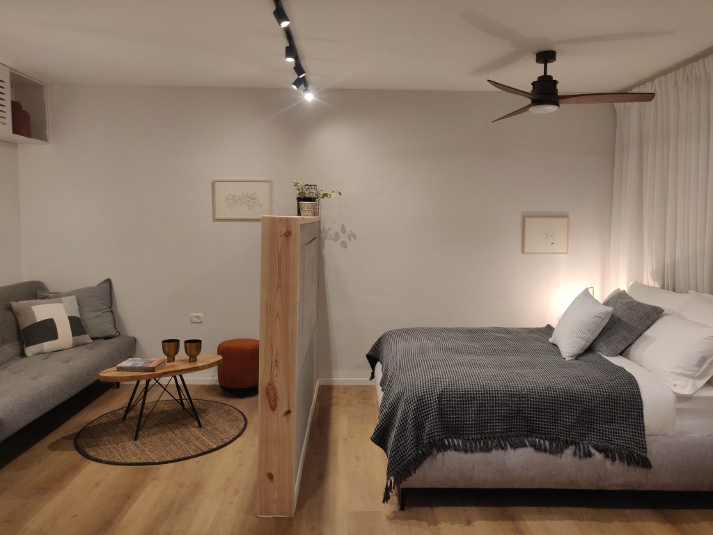 סטודיו מעוצב ומרווח ובו סלון, מיטה רחבה ומטבחון. בחדר המקלחת תמצאו מוצרי טיפוח אורגניים ובחצר שבחוץ תהנו מפינת ישיבה מקורה, דק עם מיטות שיזוף ובריכה עם מפל מים, ממש כמו מעיין בטבע.